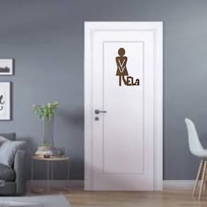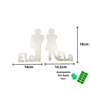 Palaca sinalização para banheiro, masculino e feminino, mdf 3mm cortado a laser, medindo 18 centimentros de altura por 14 centimetros de largura, acompanha fita dupla face, este anuncio em especifico é referente ao par com a cor natural, que pode ser pintada e personalizada de acordo com o gosto do cliente.