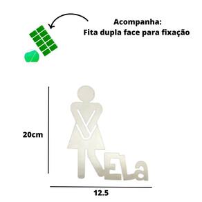 Palaca sinalização para banheiro, Feminino Ela 3mm natural, mdf 3mm cortado a laser, medindo 18 centimentros de altura por 14 centimetros de largura, acompanha fita dupla face, este anuncio em especifico é referente a unidade Feminino Ela 3mm natural com a cor natural, cor mdf cru podendo ser personalizado pelo cliente após a compra.