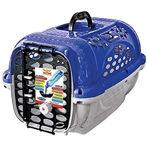 Plast Pet Caixa Transporte Panther Nº1 Azul - Indicada para cães e gatos; - Indicado para pets até 05 kg; - Segurança, qualidade, design e tecnologia; - Nível de resistência altíssimo que pode ser utilizada no carros, voos e onde mais desejar; - Garante a segurança e o conforto do seu pet; - Confortável e segura; - Alça com desenho ergonômico, suporte duplo para passagem de cinto de segurança; - Fácil montagem e a parte inferior não é vazada para melhor retenção do xixi; - A porta possui trava de segurança; - Área aberta do teto proporciona mais ventilação; - Acompanha bebedouro; Tamanho N1 - Profundidade: 44cm /Largura: 31cm / Altura: 27cm