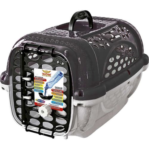 Plast Pet Caixa Transporte Panther Nº1 Preto - Indicada para cães e gatos; - Indicado para pets até 05 kg; - Segurança, qualidade, design e tecnologia; - Nível de resistência altíssimo que pode ser utilizada no carros, voos e onde mais desejar; - Garante a segurança e o conforto do seu pet; - Confortável e segura; - Alça com desenho ergonômico, suporte duplo para passagem de cinto de segurança; - Fácil montagem e a parte inferior não é vazada para melhor retenção do xixi; - A porta possui trava de segurança; - Área aberta do teto proporciona mais ventilação; - Acompanha bebedouro; Tamanho N1 - Profundidade: 44cm /Largura: 31cm / Altura: 27cm