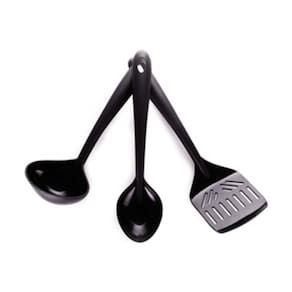 - O Conjunto de Talheres de Nylon Gourmet 3 Unidades é uma escolha prática e elegante para sua cozinha. Composto por uma espátula, uma colher e uma concha, este conjunto oferece as ferramentas essenciais para suas necessidades culinárias diárias.