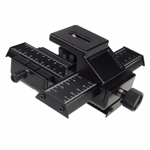 A Plataforma Bidirecional para cabeça de tripé é um equipamento de alta qualidade e próprio para mudar o centro de rotação da câmera sobre tripés. Essencial para fotografia macro, por meio dele obtemos distâncias de trabalho precisas, facilidade em fazer ajustes no foco e mais estabilidade para as fotos macro. Além disso, a Plataforma pode ser usada para outros tipos de trabalho onde o posicionamento preciso da câmera é essencial. Os trilhos permitem o movimento em quatro direções direita, esquerda, para frente e para trás . Ajustando o centro de rotação para a posição do sensor da câmera serve para gerar costuras panorâmicas com mais facilidade e qualidade. Suporte para parafuso padrão 1/4, aplicável com tripés e pedestais. Trava borboleta garante estabilidade. Trilhos de 6 permitem movimentação em quatro direções. Fácil de usar. Ideal para fotografias macro e outros trabalhos que exigem ajustes de foco precisos. Ideal para fotografia panorâmica Modo de uso: Encaixe o suporte na base do trilho. Em seguida, encaixe a câmera na parte de cima do trilho superior horizontal . O parafuso padrão 1/4 permite que a plataforma seja usada junto com um tripé. Aplicável com todas as câmeras digitais e filmadoras SLR, tubos extensores e lentes macro. Marca: F32