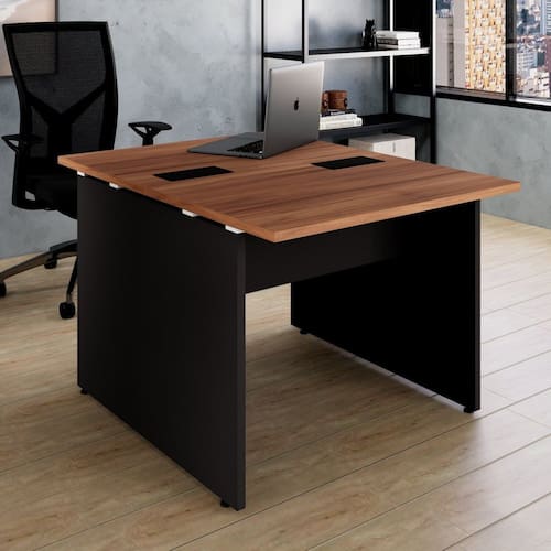 Plataforma Dupla pé painel: Tampos confeccionados em chapa de MDP (Médium