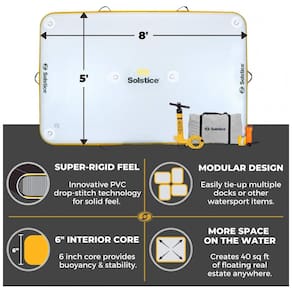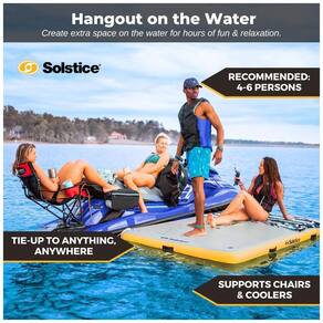 SENSAÇÃO RÍGIDA As docas infláveis da Solstice não são apenas infláveis comuns. Quando inflado, experimente uma superfície leve, mas resistente as aplicações são infinitas para essas plataformas infláveis. Perfeito para espreguiçadeiras, refrigeradores e horas de diversão na água. ESPAÇO DE HANG OUT ADICIONADO Basta inflar e amarrar na parte de trás do seu barco para estender seu imóvel na água em mais 3,7 metros quadrados. Capacidade recomendada para 4 6 pessoas suporta adultos em pé. PLATAFORMA DE MANUTENÇÃO Trabalhar em seu barco nunca foi tão fácil basta amarrar na lateral do seu barco, utilizar os anéis em D do meio para amarrar as ferramentas e manobrar sem esforço. ZENAMENTO FÁCIL A tecnologia de ponto de gota inflável torna incrivelmente fácil desinflar, dobrar e zenar de volta na bolsa incluída perfeita para zenar em pequenos espaços. CONJUNTO COMPLETO Vem com uma bomba manual de ação dupla com manômetro, bolsa de transporte, 6 amarrações de argola em D de aço inoxidável, 6 alças reforçadas, 1 kit de reparo e 1 válvula HR para inflar , desinflar de alta pressão Marca: Não Informado