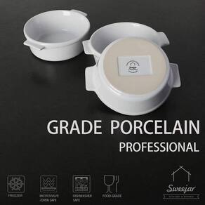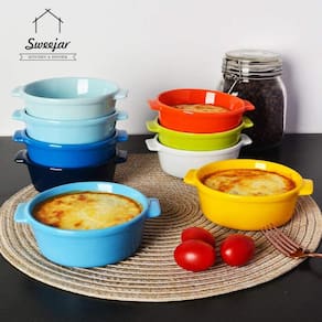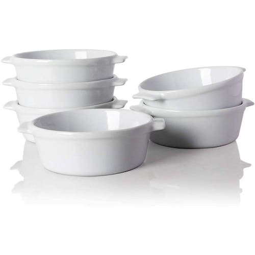 Diseño elegante: muy lindo, con un pequeño diseño de oreja en ambos lados, lo que facilita recogerlo. La simples combinación de color te hace más excepcional en la comida e impresiona a tus invitados Apilable y fácil de limpiar: este pastel se puede apilar para darte un mejor uso del espacio del armario. Esmalte suave, fácil de limpiar, fácil de limpiar con jabón y agua caliente o lavavajillas. Muy versátil: la utilidad del pequeño molde está más allá de tu imaginación. Adecuado para helados, pudin, salsa de inmersión, pudín de caramelo, quiche y soufflé. El regalo ideal para los amantes de la repostería Porcelana y seguridad: cerámica duradera, sin plomo y no tóxica. Y seguro para lavavajillas, refrigeradores, hornos y micro-ondas.