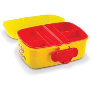 Composição: Maleta- PP, Bandeijas Orgaizadoras: -PP, Livreto e Folhas desenhadas: Papel, Tinta de pintura a dedo: resina de PVA, pigmentos, agua e conservantes, canetas Hidrograficas: Termoplasticos, Poliester e pigmentos a base de agua, Giz de cera: cera e Pigmentos, Pincel: PP.