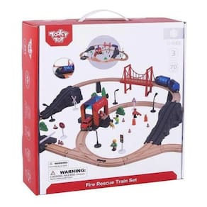 O Conjunto Pista de Trem Grande - Tooky Toy é um brinquedo educativo e interativo que garante horas de diversão para as crianças. Composto por 70 peças em madeira, o kit inclui trilhos, ponte, túnel, estação de bombeiros, trem, caminhão, bonecos, placas de trânsito e acessórios, permitindo diversas combinações e cenários criativos.