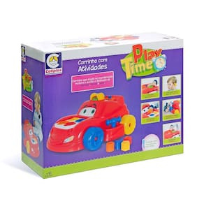 Carrinho que ajuda na coordenação motora e auxilia na distinção de formas, cores e som.