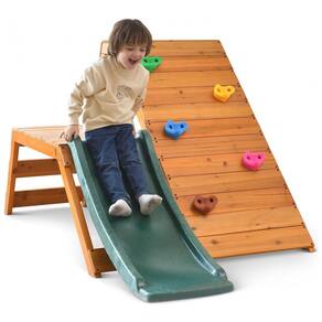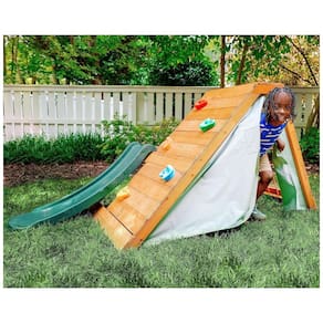 Avenlur Palm Playground 5 em 1 para Interior e Exterior: Oferece diversão no estilo Montessori Waldorf com escada de madeira, parede de escalada, escorregador de 1,2m, tenda e janelas com rede.