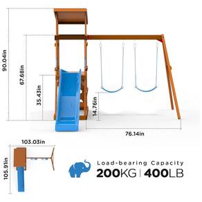 Corda segura evita lesões nos dedos ou que os cabelos fiquem presos nas correntes. Os suportes do balanço suportam até 181 kg, garantindo segurança durante o uso. Parafusos resistentes a rachaduras nas pernas em formato "A" mantêm a estrutura estável e confiável. Madeira Cedro Premium: Fabricado com cedro de alta qualidade, o playground é resistente à água, corrosão e rachaduras, garantindo durabilidade em todas as condições climáticas.