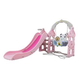 Playground Infantil 3 em 1 Plástico Escorregador Balanço Cesta Basquete Brinquedo Brinqway Bw-218 - Cor: Rosa