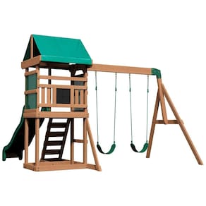 Se seus pequenos estão procurando uma aventura de playground no quintal, o balanço de madeira Bay Pointe da Backyard Discovery é a escolha perfeita! Compacto em tamanho, mas grande em diversão, este conjunto é ideal para crianças de 3 a 6 anos que querem se divertir balançando nos balanços de cinto ou descendo rapidamente pelo escorregador rápido de 1,83 metros (6 pés).