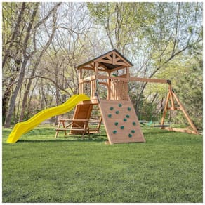 Parede de Escalada Dupla: Parede de escalada ampla, com 1,52 m de altura, e 12 pedras de escalada posicionadas de forma segura. Suficientemente espaçosa para dois escaladores se divertirem juntos até o topo.
