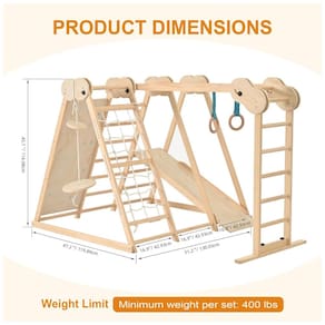 O Parque Infantil Indoor OLLIKIVI é uma inovação que oferece diversão e aprendizado para seu filho. Este playground Montessori 7 em 1 inclui escorregador sueco, parede de escalada, balanço, barras de macaco, rede de escalada com corda e escada de madeira. Perfeito para pais que buscam um brinquedo seguro e de qualidade para várias crianças.