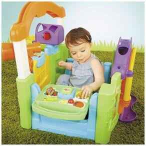 RECURSOS INTERATIVOS. As persianas das janelas abrem e fecham para brincar de esconde-esconde com seu filho. Para brincadeiras mais divertidas, use o vaso de plantas na janela para brincar de soltar bolinhas. A caixa de correio permite que as crianças finjam receber "correspondências", além de descobrir formas e cores.