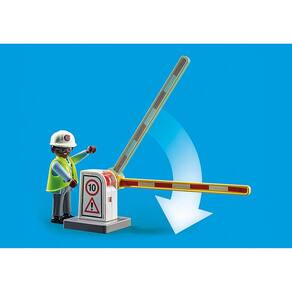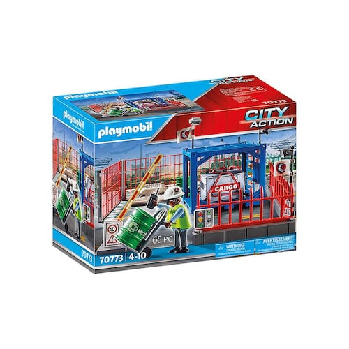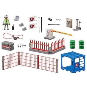 Se o transporte da carga não puder continuar imediatamente, a mercadoria fica temporariamente no depósito de carga. Sejam contêineres, toneladas ou sacos - tudo é armazenado com segurança aqui. Um novo contêiner acaba de chegar. Ele deve ser armazenado temporariamente por alguns dias. Por razões de segurança, o estivador também prende o contêiner à placa de base com uma corda. Agora nada pode escorregar. O playset inclui uma figura PLAYMOBIL, elementos de cerca, uma barreira, um módulo de contêiner e muitos outros extras.