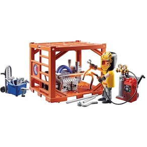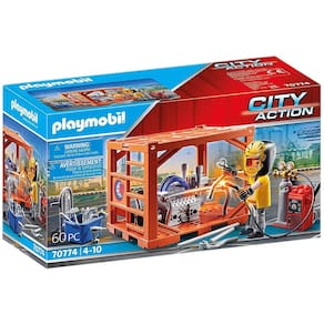 Para jovens logísticos: Fabricantes de Conteiners Playmobil para o transporte seguro de cargas e muito mais. Inclui 1 módulo de contêiner com escada, garra, tampa removível, cordão de borracha com gancho para fixação na placa de base, 1 soldador com máscara removível. Conteúdo da embalagem: Conjunto de bonecos de 60 peças com instruções: 1 contêiner, 1 figura, 58 acessórios.