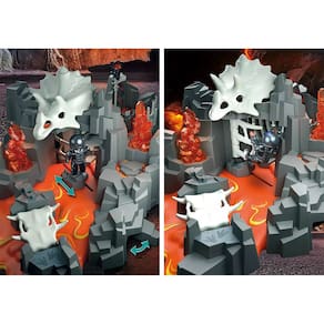 - A emocionante batalha pelas pedras de energia continua. De que lado estará a desonesta gangue de mineração? - Cuidado e apertem os cintos: tudo está acontecendo no segundo capítulo da série Dino Rise. Os amigos da Equipe Dino Rise precisam atravessar uma mina perigosa e conhecer um grupo completamente novo: os Mineiros. Os Mineiros mantêm um companheiro anteriormente desconhecido da Equipe Dino Rise em cativeiro nas profundezas da Mina Dino. - A mina só pode ser percorrida pelas insanas voltas e reviravoltas do Mine Train, que garante descidas aventureiras e emocionantes. Mas cuidado, os mineiros tomaram precauções e equiparam a mina com armadilhas complicadas. Se um interruptor for acionado, existe o risco de cair na escuridão. Com o elevador de minas, os cruzadores de minas individuais podem ser colocados de volta na linha de partida. Os amigos conseguirão salvar o dinossauro? - O conjunto apresenta o membro da equipe Dino Rise Kaidan, o líder da gangue de minas e dois de seus vilões, uma mina de dino com sistema de esteira, cruzadores de minas e elevador, um dimorphodon, várias ferramentas e muitos outros acessórios para diversão de dinossauro cheia de ação./1/4+/2/NÃO/3/Contém Kaidan, chefe da mina, trabalhador da mina, 1 dimorfodonte, armadura completa para Kaidan, mina completa, layout de pista como uma pequena montanha-russa, interruptores para ajustar, cruzador de minas, reboque de cruzador de minas incl. Lore, elevador, cercas, 2 foguetes, 4 projéteis, farpas com cabo e cordão, laboratório, ferramentas diversas, brocas e braços de garra móveis, 2 câmeras, 3 holofotes, 3 stalktites, 2 bananas de dinamite com fusível e caixa de gatilho, 2 penduradas letreiros, breakout rock, chain of the dino, 1 capacete de construção, 1 capacete de construção com proteção auricular, 2 luvas, 2 tiaras com visor e viseira, 1 mapa, 1 mesa de corte para pedras de energia, garra para pedras de energia, serrote com serra grande lâmina 1 relógio de pulso, 1 GPS, 3 pedras de energia, 3 amostras de rocha, 1 caixa de armazenamento, 4 sinais, 1 tubo de jato