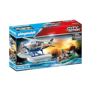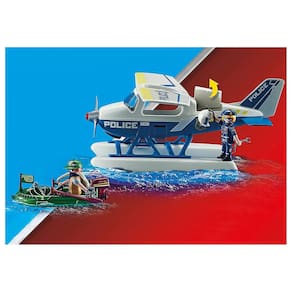 O hidroavião da polícia persegue o bote do contrabandista em uma emocionante perseguição na água. Com corda para ações espetaculares de rapel. A corajosa polícia da PLAYMOBIL também mantém a lei e a ordem no ar. Um bandido está fugindo com seus bens contrabandeados. Ele tenta escapar no bote de borracha. Mas o piloto esperto fica de olho nele o tempo todo da cabine e não o deixa escapar.
