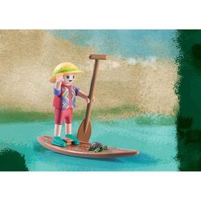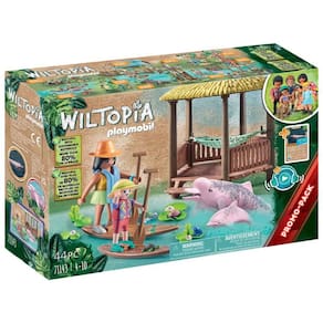 Descrição: "- Uma das principais tarefas de Sofia Palmer durante sua viagem de pesquisa é documentar a vida animal e vegetal da Amazônia. Juntamente com a filha Liv, ela está a caminho para examinar mais de perto um grupo de botos. - Em suas pranchas de stand-up paddle, mãe e filha abordam cuidadosamente os animais e, de uma distância segura, observam os botos em seu ambiente natural.- O conjunto inclui duas figuras Playmobil, um boto com bebê, uma tartaruga com bebês, duas pranchas de SUP com remos, uma cabana com rede e muitos outros fantásticos extras para emocionantes aventuras lúdicas.- Obtenha uma porção extra de conhecimento com o aplicativo web Wiltopia que oferece conteúdo adicional de áudio e vídeo e leva as crianças diretamente para o habitat dos animais. Basta digitalizar o código QR no cartão de conhecimento animal e o mundo animal e vegetal detalhado chega à sua casa. Use o recurso AR legal para tirar uma selfie com os animais. Descubra a transferência de conhecimento divertida com efeito divertido e de aprendizado. - Recomendado para maiores de 4 anos." Características: Marca: Sunny Brinquedos Referência: 3717 Idade recomendada: A partir de 4 anos Pilhas Inclusas? Tipo de Pilha/Bateria Não necessita de pilhas Possui Luzes: Não Possui Sons: Não Dimensões aproximadas da embalagem: 18,2 x 28,4 x 7,4cm (A x L x C) Garantia: 3 meses a contar da emissão da procedência garantida Embalagem: Conteúdo da embalagem: 1 adulto, 1 criança, 1 boto adulto, 1 boto bebê, 1 tartaruga adulta, 2 tartarugas bebês, 1 sapo, 1 cabana com rede, 1 SUP, 1 SUP infantil, 1 remo, 4 nenúfares, 1 chapéu, 1 gorro infantil, 1 relógio de pulso Produtos de decoração não inclusos. Imagens meramente ilustrativas. As cores dos objetos podem sofrer alterações devido a luminosidade, configurações do monitor e até mesmo a percepção do usuário.