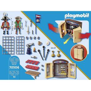 Descrição: Piratas e soldados travam uma amarga batalha pela supremacia nos mares há muitos anos. O bravo soldado da rocha vermelha acredita que seu precioso tesouro está seguro no bastião, mas um astuto pirata decide roubar o baú com o ouro. Felizmente, a pequena fortaleza está bem protegida com uma parede de grade destacável e um canhão com balas. O pirata ainda conseguirá roubar o tesouro?