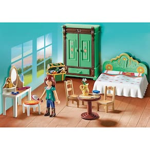 "Mobiliário para o quarto aconchegante de Lucky com penteadeira, arca do tesouro e tesouros. Crie novas aventuras no quarto de Lucky. Lucky pode ser encontrada aqui quando ela está estudando ou fazendo planos para si mesma, o Espírito e seus amigos. Ela mantém suas lembranças preciosas no baú do tesouro e pode facilmente guardar suas roupas no armário espaçoso. Na frente da linda penteadeira, Lucky se prepara de manhã, então ela se senta na frente do grande espelho e escova os cabelos. O cenário da peça contém Lucky, penteadeira, mesa e duas cadeiras, guarda-roupa, livros, perfume, troféu, jarra e muitos outros acessórios. Figuras: 1 sorte; Acessórios: 1 cama, 1 guarda-roupa, 1 penteadeira, 1 mesa, 2 cadeiras, 1 banquinho, 1 baú, 1 xícara, 1 fita de torneio, 2 livros, 1 garrafa, 1 jarro de água, 1 pente, 1 escova, 1 frasco de cosmético, 1 lupa, 1 pena, 1 flor, 1 pedra, 3 pedras de vidro "