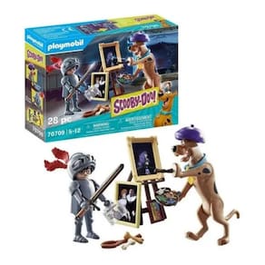O conjunto inclui scooby-doo, cavaleiro negro, carta fantasma, a armadura mal-assombrada do cavaleiro e acessórios de pintura. Total de 28peças