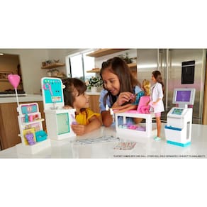 - Explore o mundo de cuidar de outras pessoas com o conjunto de brinquedos Barbie Fast Cast Clinic!