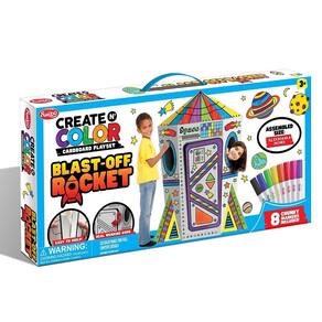 Este conjunto de brinquedos de papelão de grandes dimensões mede 32x30x47 polegadas quando totalmente montado. O Rocket possui uma porta de trabalho real e inclui 8 marcadores robustos. A partir de 3 anos