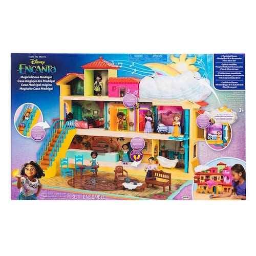 Novo no Disney's Encanto, o conjunto mágico Casa Madrigal dá vida à magia de Casita! Playset tem mais de 15 polegadas de altura, com 3 andares, 7 quartos e inclui uma boneca Mirabel e 15 acessórios de casa! Possui 6 recursos de luz, som e música em toda a casa! Inclui o recurso Step and Surprise exclusivo da linha de bonecas pequenas da Jakk Pacific; Somente a pequena boneca Mirabel, com sua pegada única, pode ativar um show de música e luzes em toda a casa! Levante e abaixe o elevador de mudança climática da tia Pepa para luzes e sons! Escadaria se transforma em um escorregador para Mirabel, assim como no filme! O quarto de Mirabel toca música e apresenta um display de luz Open Antonio, e as portas mágicas da sala de Isabela para ouvir luzes e recursos sonoros! Inclui música ou inspirada no Disney's Encanto - Requer 3 pilhas AA (não incluídas) Inclui: 1 Magical Casa Madrigal, 1 Boneca Mirabel, 1 Escadaria, 1 Peça de Comida, 1 Pires de Xícara de Chá, 1 Xícara de Chá, 1 Bule de Chá, 1 Cadeira de Balanço, 1 Mesa Externa, 1 Banco, 1 Mesa de Jantar, 2 Cadeiras de Jantar, 1 Banheira, 1 Mirabel Cama, 1 cama Pepa, 1 banquinho, 1 lençol de etiqueta