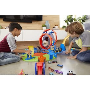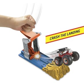 Conjunto de brinquedos Hot Wheels Monster Trucks Launch & Bash com lançador, 4 carros triturados, caminhão monstro em escala 1:64, zona de pouso para atropelamento e ação de colisão. Ótimo presente para crianças de 4 a 5 a 6 a 7 anos - As crianças adoram os caminhões Monster Hot Wheels com suas rodas GIGANTES e características ultrajantes - Com o conjunto Launch & Bash, as crianças podem lançar seu caminhão na plataforma cheia de carros amassados moldados para uma explosão de carros - Fácil configuração para mirar no ponto de partida na zona de aterrissagem forçada e depois se lançar para o grande momento repetidamente - Conjunto simples com recompensa épica inclui um lançador de slam, plataforma de pouso, 4 carros esmagados e um feroz Monster Truck em escala 1:64 — presente perfeito de aniversário, presente de Natal ou recompensa para fãs de jogos de veículos