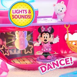 Iate Disney Junior Minnie Mouse Bowdazzling, luzes e sons, conjunto de brinquedos de 16 peças com bonecos, rosa, barco, peças bônus, brinquedos infantis para crianças a partir de 3 anos da Just Play