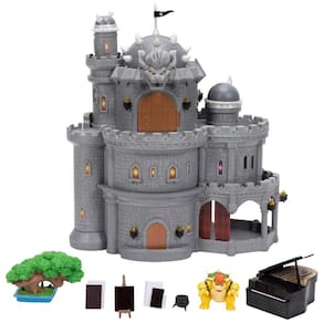O castelo conta com torre giratória, porta articulada e lareira. É o cenário perfeito para a figura do Bowser se divertir tocando o piano de dois botões com sinos, pintando com as diversas telas ativadas pelo calor e o caldeirão, ou cuidando do jardim com seu bonsai.