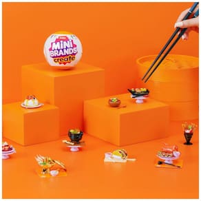As cápsulas Mini Brands utilizadas no produto são fabricadas com plástico reciclado certificado, contribuindo para o reaproveitamento de materiais na linha de brinquedos colecionáveis. O playset é indicado para usuários a partir de 8 anos, devido à presença de peças pequenas e componentes não comestíveis.