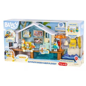 - Agora seus filhos podem ir de férias na praia com a Bluey quando ela visitar sua cabine de praia! O conjunto de brinquedos Bluey's Ultimate Beach Cabin é repleto de recursos divertidos para torná-lo férias inesquecíveis.