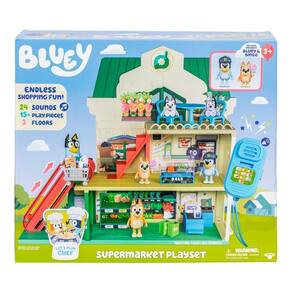 Transforme a hora da brincadeira em uma aventura animada com o Playset Supermercado da Bluey! Inspirado nos episódios mais divertidos da série, este playset completo convida as crianças a fazer compras com Bluey e Bingo, explorar prateleiras recheadas de produtos e até aproveitar uma refeição no restaurante do andar superior. A diversão ganha vida com 24 frases icônicas da série, interfone com efeitos sonoros, 13 acessórios realistas e 2 figuras exclusivas superdetalhadas. Ideal para recriar cenas favoritas ou inventar novas histórias cheias de imaginação, o Supermercado da Bluey é o presente perfeito para pequenos fãs que adoram brincar de faz de conta com seus personagens preferidos.
