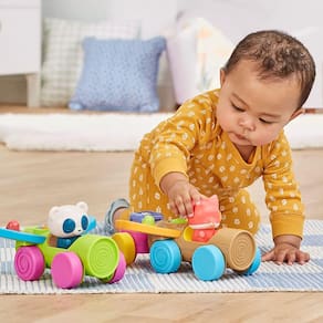 As crianças irão se divertir com os veículos Playskool Bichinhos Rolantes com 2 veículos, 2 bichinhos fofinhos, bloco e trailer. Os carrinhos possuem bolas com números que giram durante a brincadeira, assim os pequenos alunos podem aprender a reconhecer os números e a contar enquanto se divertem. Inclui as figuras de raposa e panda que se encaixam nos carrinhos ou no trailer acoplável. Crianças a partir de 12 meses vão adorar os novos amiguinhos! Estes carrinhos são um ótimo presente de aniversário ou outras celebrações para crianças a partir de 1 ano.