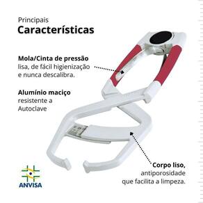 Outra característica exclusiva desse plicômetro é a mola externa plana e lisa, chamada de cinta de pressão. Essa mola facilita a higienização e evita a transmissão de doenças de um indivíduo para outro por contato com o equipamento.