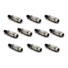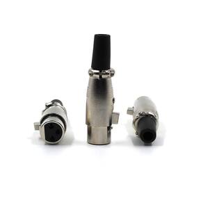 Conector profissional para cabo, linha XLR fêmea de 3 polos para cabos de áudio de três condutores. Conector: XLR Composição do Produto: Metal niquelado e Borracha. Dimensões do Produto: 2,5 comprimento x 7 altura x 2,5 largura