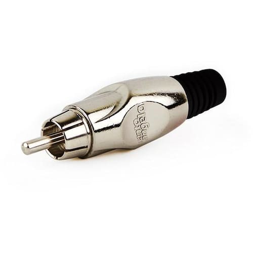 Plug Rca N Niquelado Santo Angelo Plug rca injetado em zamac niquelado. Acompanha 3 buchas de identificação de cores diferentes nas cores amarelo, azul e vermelho.