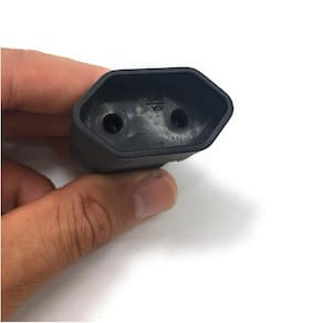 Plug para tomada Margirius femea 2 pinos 10A Desmontavel preto prensa cabo Plug com parafuso para montagem em cabos. Tomada Femea de 2 pinos