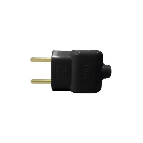 2P Macho 10A/250V Cor: Preto Dimensões: - Comprimento: 7,5cm - Altura: 2cm - Largura: 3,5cm Composição: Plástico isolante com contatos em metal Validade indeterminada A instalação deve ser feita por um profissional qualificado