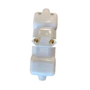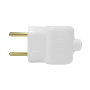 2P Macho 10A/250V Cor: Branco Dimensões: - Comprimento: 7,5cm - Altura: 2cm - Largura: 3,5cm Composição: Plástico isolante com contatos em metal Validade indeterminada A instalação deve ser feita por um profissional qualificado