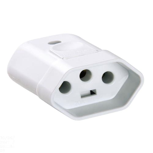 O Plugue Fêmea 2P+T 250 V 10 A Tramontina Branco é a escolha ideal para confeccionar extensões e garantir alta qualidade e segurança. Ele é produzido em termoplástico antichama, conta com componentes condutores em liga de cobre e garante alta qualidade e segurança. Com a Tramontina, você tem o melhor para o seu dia a dia e para todas as suas tarefas! Orientações . Características Gerais EAN13 7891435050042 DUN14 17891435050049 NCM 8536.69.10 Peso Líquido 0,0300 kg. Peso Bruto 0,0300 kg. Metragem 0,000150 m³. Dimensões Embalagem (Compr. X Larg. X Alt.) 100x 60x 25 mm. Dimensões Produto (Compr. X Larg. X Alt.) 69x 42x 25 mm. Cor 1 FFFFFF Hexa Observações .