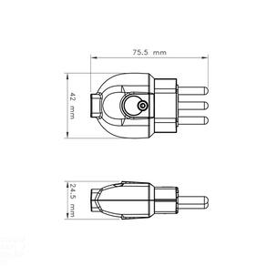 Você irá levar praticidade e versatilidade para a manutenção dos seus equipamentos elétricos ou extensões, com o Plugue Macho 2P+T 250 V 20 A Tramontina Preto. Ele é produzido em termoplástico antichama e conta com componentes condutores e pino maciço em liga de cobre, ambas características que proporcionam alta qualidade e segurança. Com a Tramontina, você tem o melhor para o seu dia a dia e para todas as suas tarefas! Orientações Possui prensa cabo, para melhor instalação do cabo condutor elétrico. Características Gerais EAN13 7891435049978 DUN14 17891435049975 NCM 8536.69.10 Peso Líquido 0,0310 kg. Peso Bruto 0,0330 kg. Metragem 0,000120 m³. Dimensões Embalagem (Compr. X Larg. X Alt.) 100x 60x 20 mm. Dimensões Produto (Compr. X Larg. X Alt.) 76x 42x 25 mm. Cor 1 0000000 Hexa Observações A instalação e segurança: É importante que o produto seja instalado por profissional habilitado. Antes de instalar, desligue a energia elétrica.