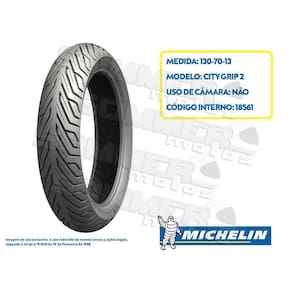 Michelin é uma das principais fabricantes de pneus do mundo, conta com mais de 100 anos no mercado e patrocinadora de inúmeros eventos moto gp , vários prêmios entre eles quality excellence award, e é sinônimo de qualidade e durabilidade com grande tecnologia implementada e confiabilidade seus produtos.Número de registro da agência reguladora Inmetro 002626/2012 Descrição técnicaTipo: pneu novo certificado inmetro 002626/2012Medida: 130-70-13Modelo: city grip 2Aro: 13Ndice carga/ velocidade: 63s 272kg / 180km/h Necessita de camara: naoCodigo interno: 18561Codigo michelin: 5693Garantia: 90 dias loja - 1 ano fabricante -considerando apenas defeito de fabrica. A garantia do produto é válida apenas para defeito de fabricação, desgaste natural e mal uso não são válidos para a garantia. Porque comprar em nossa empresa Estamos há mais de 10 anos no mercado de peças e acessórios para motocicletas. Hoje possuímos 2 lojas físicas, trabalhando sempre com seriedade e atendimento de qualidade, com a missão de ser referência no segmento de 2 rodas. Seus produtos serão despachados rapidamente, após a confirmação do pagamento. Compra garantida:
