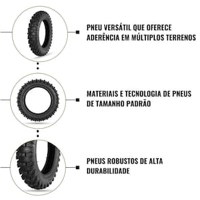 - Excelente tração em terrenos variados: O pneu 70/100-10 oferece ótima aderência em terrenos soltos, como areia, lama e cascalho, proporcionando maior segurança e controle ao piloto.