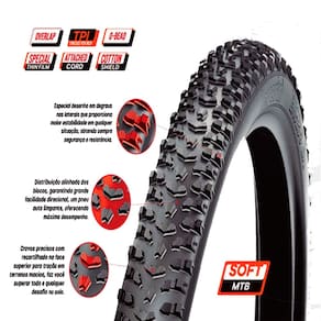 Pneu MTB e TRAIL homologado pelas principais montadoras nacionais de bicicletas e mais vendido no mercado brasileiro. Excelente tração em terrenos macios e arenosos. A altura dos blocos da escultura, a distribuição na banda de rodagem e a geometria possibilitam fácil desagregação dos materiais do solo. A união destas propriedades confere a este desenho uma excelente performance que excede as expectativas.