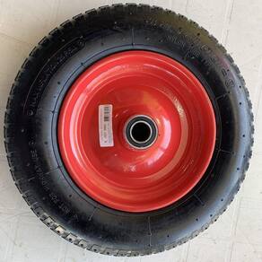 Pneu Para Carro De Mão Sem Câmara Conjunto completo de pneu sem câmara com roda, capacidade 80 kg, Flex, super econômico, O pneu é produzido por moldagem de espuma rígida de Poliuretano, polímero que compreende uma cadeia de unidades orgânicas unidas por ligações uretânicas, com espuma ultra concentrada, que eleva sua capacidade de suportar peso para 130 kg, a aumenta significativamente sua resistência ao atrito e abrasão: Roda com rolamentos tipo rolimã aço carbono GB6005 2RS, diâmetro central 1, espessura 15mm, solda super reforçada entre os aros O uso de rolimã, ao invés de rolete ou eixo livre; a espessura da chapa; a densidade da solda; e a pintura eletrostática produzem uma aro exclusivo, com direção suave, beleza e resistência singulares. Ean: 7898526966794