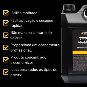 Como aplicar: Limpe e seque completamente o pneu Agite bem o produto Aplique uniformemente com espuma ou pincel Remova excesso e aguarde secagem rápida Ideal para: Lava-rápidos, centros automotivos, oficinas e detalhistas que buscam um acabamento de alto padrão com resultado profissional e durável.